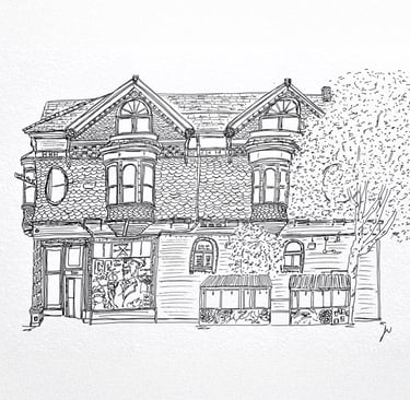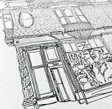 Intricate, fine-line, hand-drawn illustrations that celebrate the love and memories of places that mean the most to you. Whether it’s your home, a favorite coffee shop, a beloved bar, or a cozy bookstore. These unique, heartfelt pieces make perfect gifts for the holidays, housewarmings, special occasions, or just because.