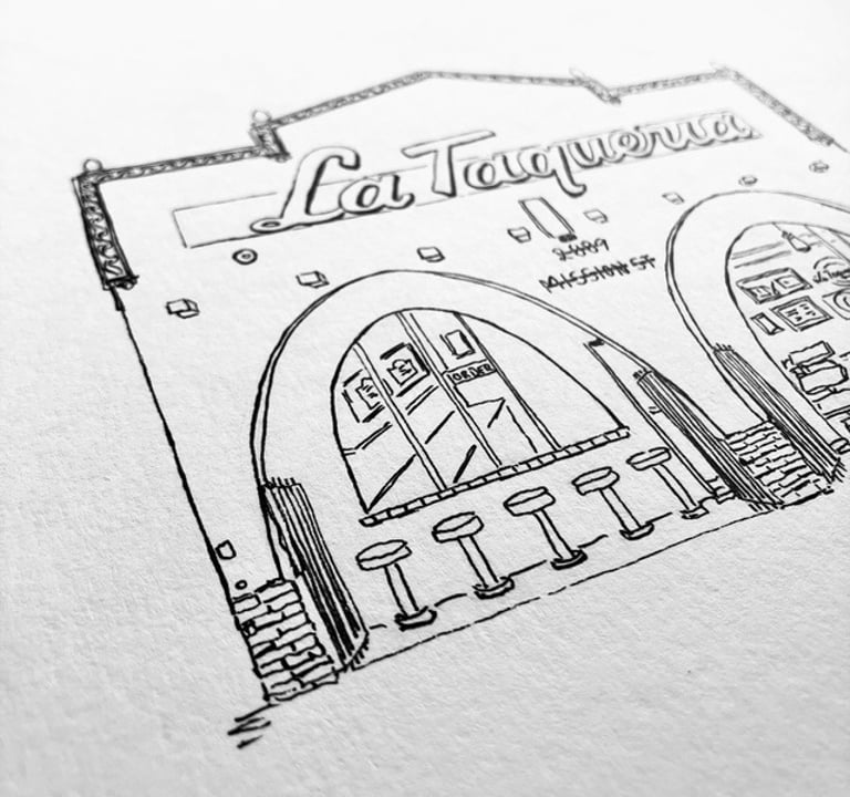 "I used SF Neighbors to create a custom illustration of the bar where my husband and I met. The process was collaborative, and she asked for feedback and shared progress which allowed me to ensure the final illustration was exactly what I had envisioned. The final product captured the beauty of our neighborhood bar and was a perfect 10 year anniversary gift! Every time I walk past it framed on my wall, I smile."